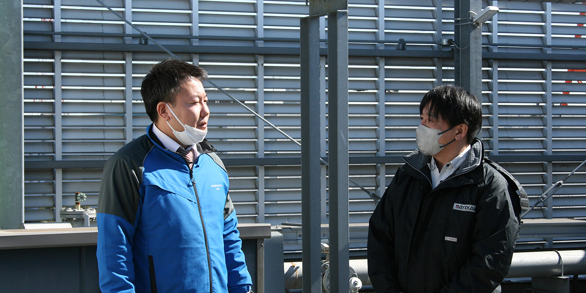 さいたま営業所の担当者とメンテナンスについて話す江田さん