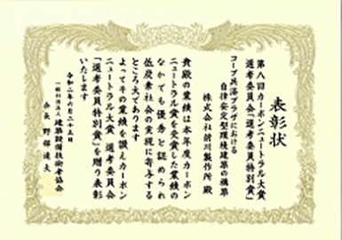 このたび、株式会社前川製作所は、一般社団法人建築設備技術者協会主催の公募「第8回カーボンニュートラル賞」において、協力企業と共に『業績名:コープ共済プラザにおける自律安定型環境建築の構築』にて、関東支部賞及び選考委員会「審査員特別賞」を受賞いたしました。