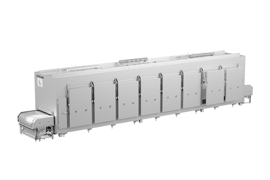 大扉の採用により、清掃用の庫内通路をなくし、機幅を前モデル比で13~26%サイズダウンを実現。よりコンパクトな設置が可能となり、前モデルでは対応の難しかった限られたスペースにも導入可能になりました。また本体の容積減少に伴い、ファン動力も最大28%削減し、省エネルギーにも寄与します。